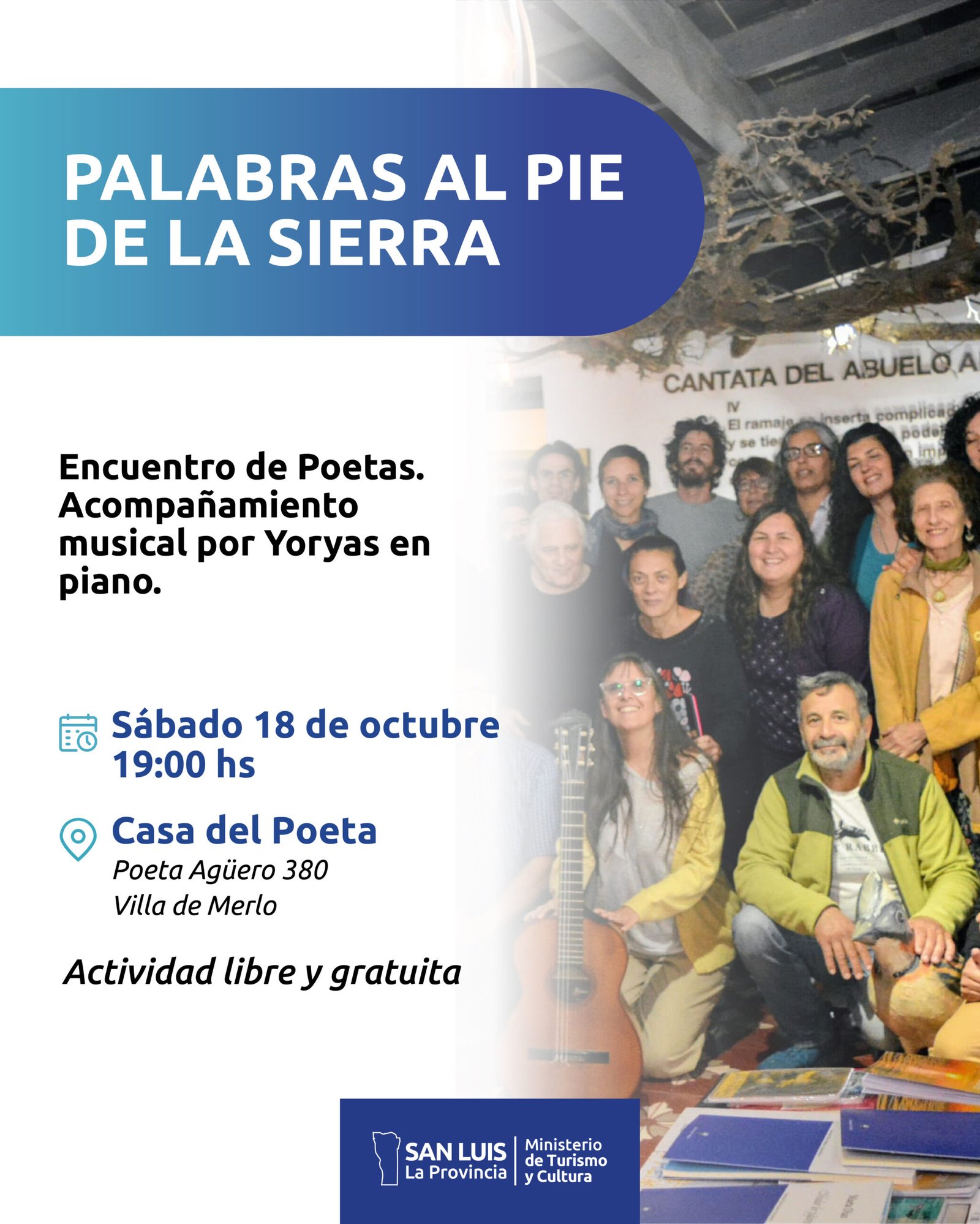 Calendario de Espectáculos del mes Notas “HIDALGO, rastreador de yuyos, pastor de lejanías” en la Casa del Poeta Notas ‘Palabras al pie de la sierra’ celebra su décimo aniversario en Villa de Merlo Notas La Bruja Salguero en la Casa del Poeta Notas “Belén” en la pantalla del cine de Merlo Notas La UNLC realizará su Primera Jornada de Paleoarte con invitados especiales Notas Horror en Merlo : 4° edición del Festival Merlo Sangriento Notas Sergio Zabala en Amigxs de Merlo Notas “Palabras al Pie de la Sierra” Notas “Norte Libre” en el auditorio de la Casa del Poeta Notas Exitosa edición del Encuentro de Pintores Paisajistas Notas La UNLC abre inscripciones para el ciclo lectivo 2026 Notas Comienza el 33° Encuentro de Pintores Paisajistas 1 2 3 4 5 … 7 8 9 10 Next »