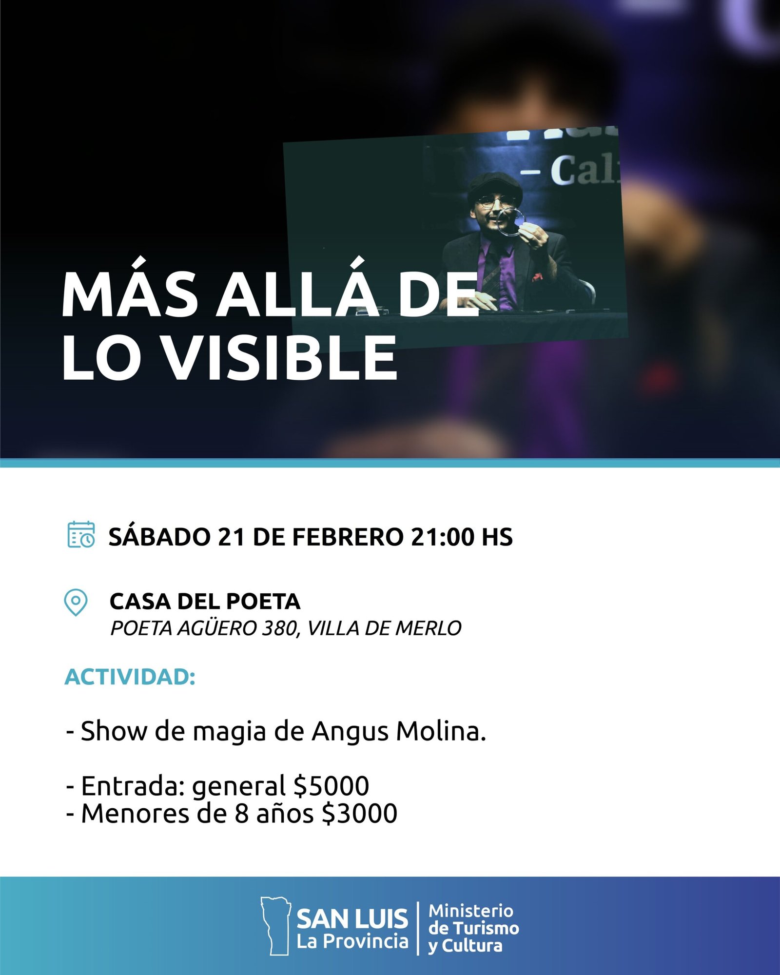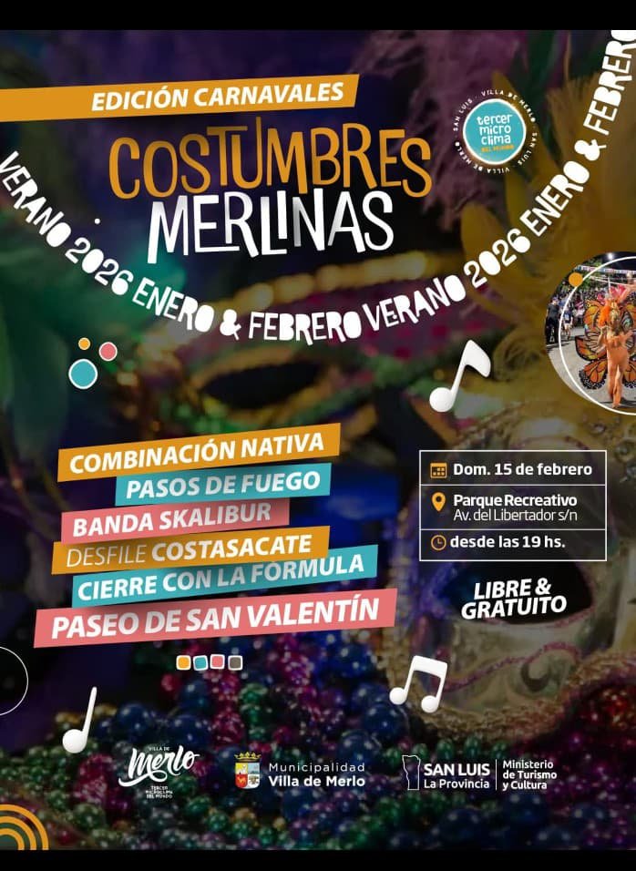 Calendario de Espectáculos del mes Notas Pablo Alarcón y Claribel Medida en el escenario de Amigxs de Merlo Notas Vuelve el Ciclo Cine Debate Notas Show de Magia de Angus Molina Notas Presentación del documental “Charco, canciones del Río de la Plata” Notas “Costumbres Merlinas- Edición Carnaval” Notas Agenda de actividades culturales y recreativas para el fin de semana de Carnaval Notas “Pose Ida”, exposición de Soledad González en Casa Palmira Notas Cuti y Roberto Carabajal en la Villa de Merlo Notas El municipio evalúa positivamente los resultados de la 53° edición del Festival Valle del Sol Notas Jorge Araujo en el escenario de la Casa del Poeta Notas Exhibición de Numismática y Filatelia Notas Luis Palacio, “columna vertebral del teatro sanluiseño” en Amigxs de Merlo 1 2 3 4 5 … 7 8 9 10 Next »