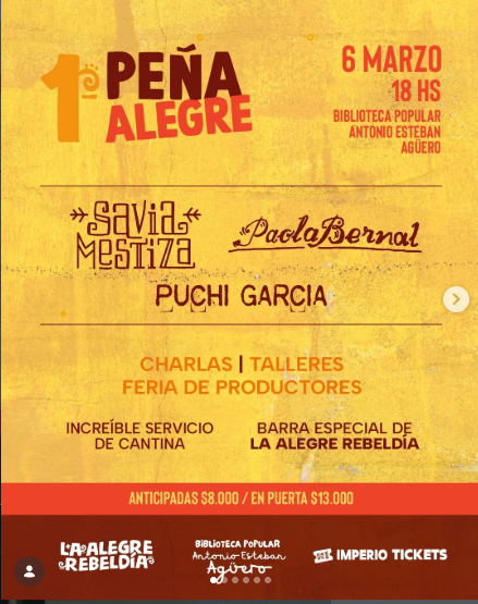 Calendario de Espectáculos del mes Notas Sol Burgos y la Trama del Viento y Guadalupe Mediavilla juntas en Amigxs de Merlo Notas Exposición Colectiva “#8M2026 Mujer y Derechos” Notas Continúan las inscripciones al Secundario de Adultos de la Escuela Técnica N.º 34 “Arístides Bratti” Notas Extendieron las inscripciones para el 5° Salón de Arte San Luis hasta el próximo lunes 23 de febrero a las 23:00 Notas Vereda Tropical en “Humano” Notas Taller de Escritura Creativa en el Espacio comunitario, cultural y recreativo Barrio Dabal Notas La UNSL convoca 14º Premio “Polo Godoy Rojo” Notas El Movimiento “Cultura en Alerta” convoca a movilizar contra la reforma laboral Notas Nueva edición del Ciclo de Teatro, Circo y Humor: “Con el (M)artes a otra parte” Notas Pablo Alarcón y Claribel Medida en el escenario de Amigxs de Merlo Notas Vuelve el Ciclo Cine Debate Notas Show de Magia de Angus Molina 1 2 3 4 5 … 7 8 9 10 Next »