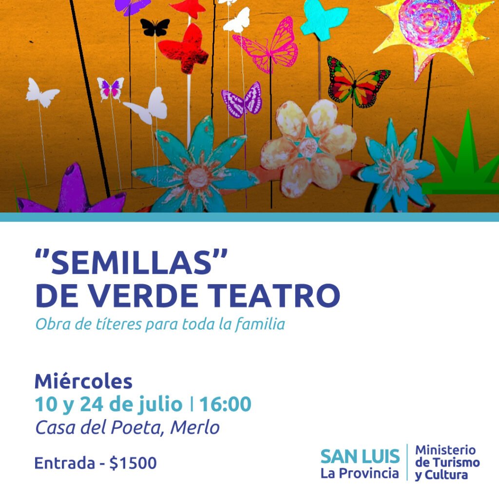 Espectáculo de títeres “Semillas” de Verde Teatro. “Semillas” habla de mariposas, del monte, de la Tierra, de cómo la sabiduría de la Pachamama y la fuerza del amor pueden acabar con la ceguera del hombre destructor. Entradas $1500.