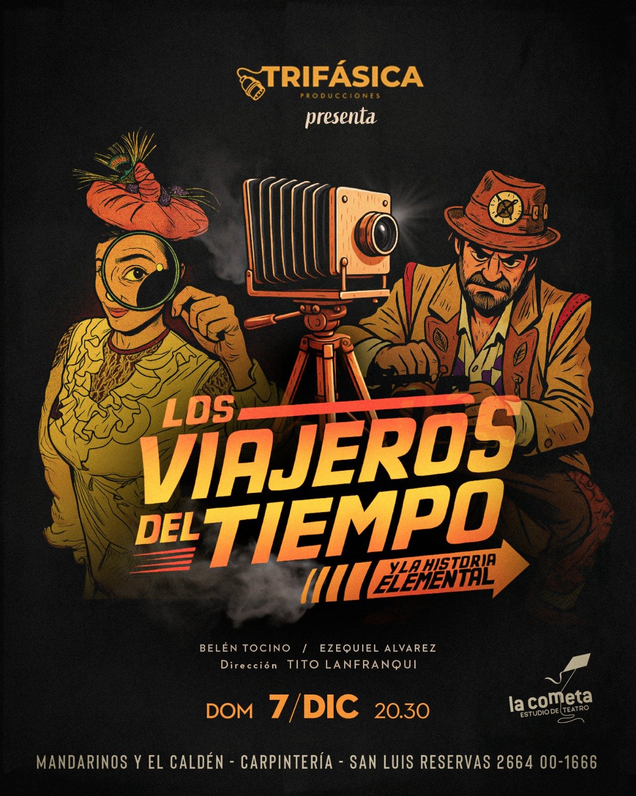 Event date: 07/12/2025 Aterrizan en la COMETA Estudio de Teatro., Los Mandarinos y el Calden. Carpintería San Luis. Solo con reservas al 2664001666.